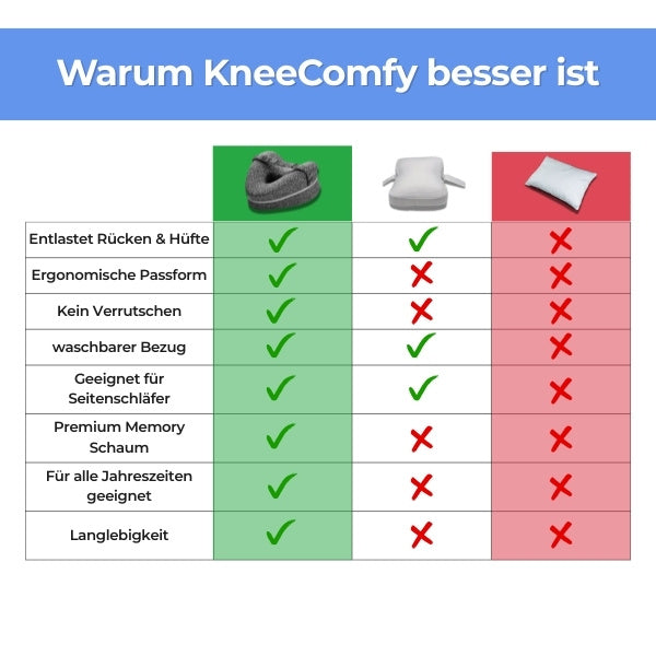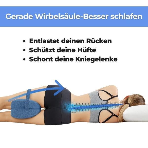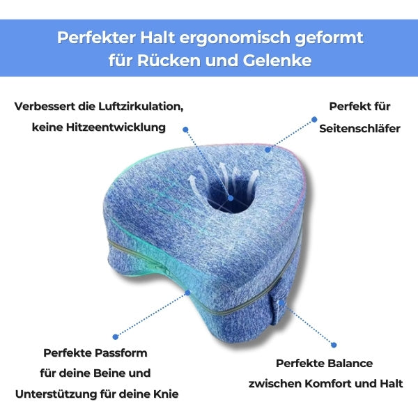 - KneeComfy sorgt für optimale Ausrichtung deiner Wirbelsäule und mehr Komfort in der Nacht.
